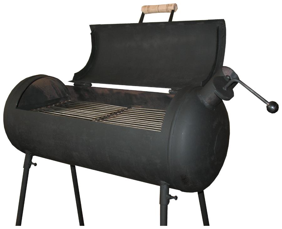 Мангал-барбекю з кришкою, що відкидається і зйомною решіткою з нержавіючої сталі. Служить для приготування їжі на відкритому повітрі, а ніжки розбірні дозволяють спростити процес транспортування. Виготовлений із пропанового балона об’ємом 50 л.